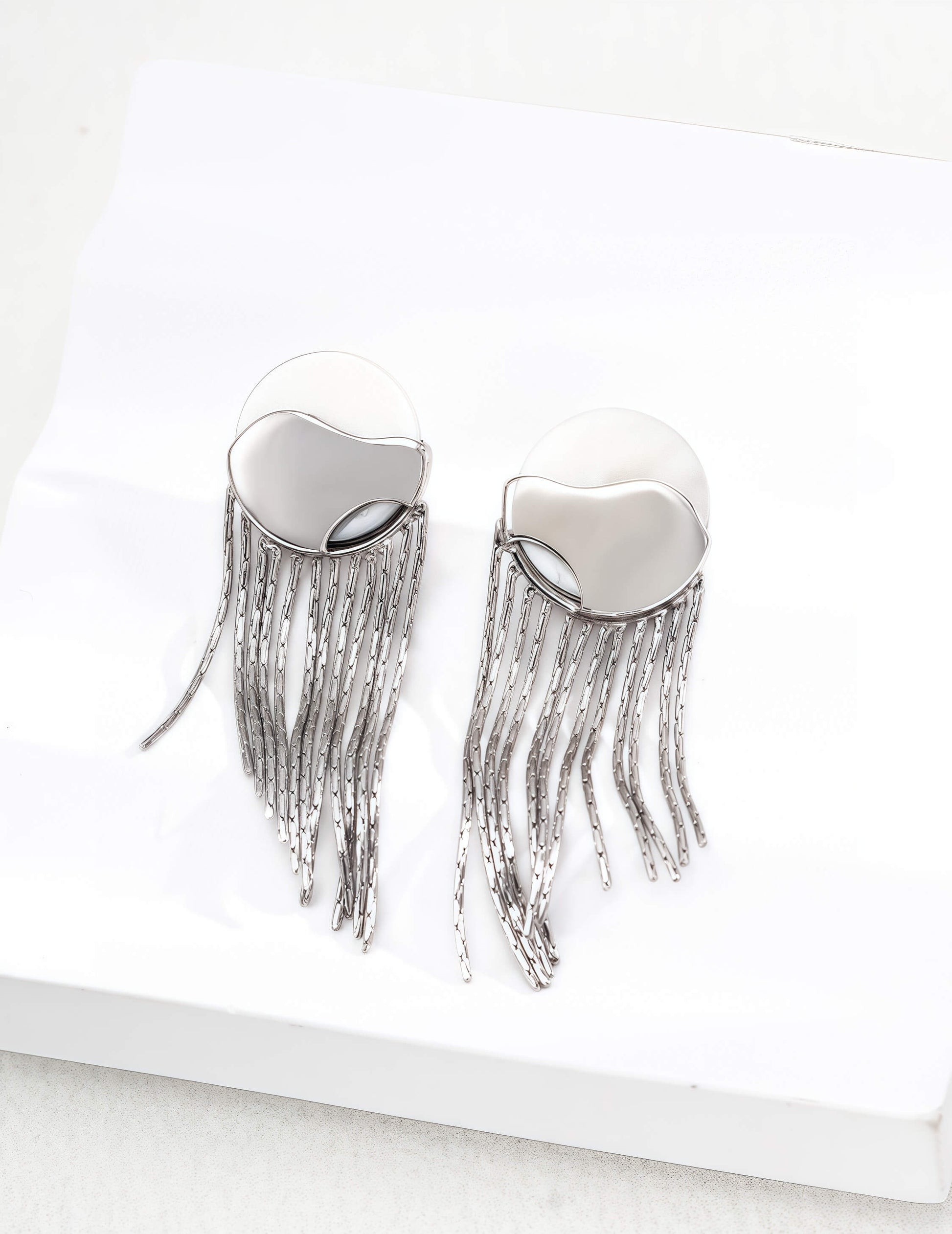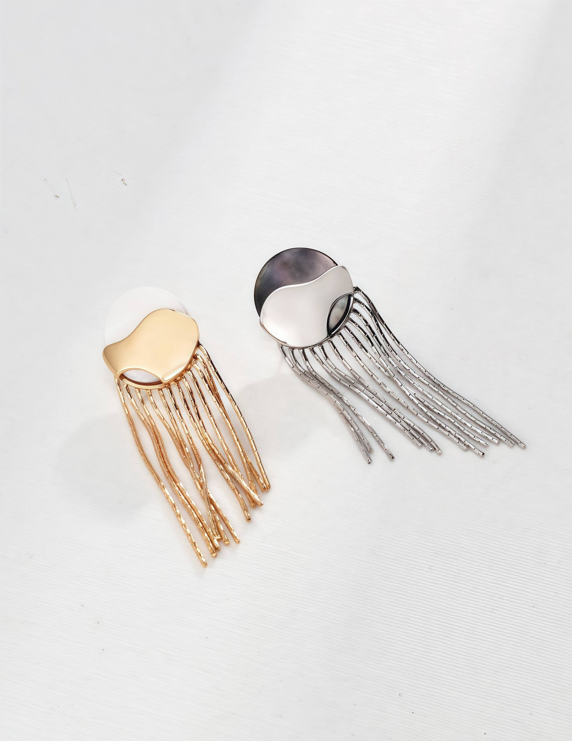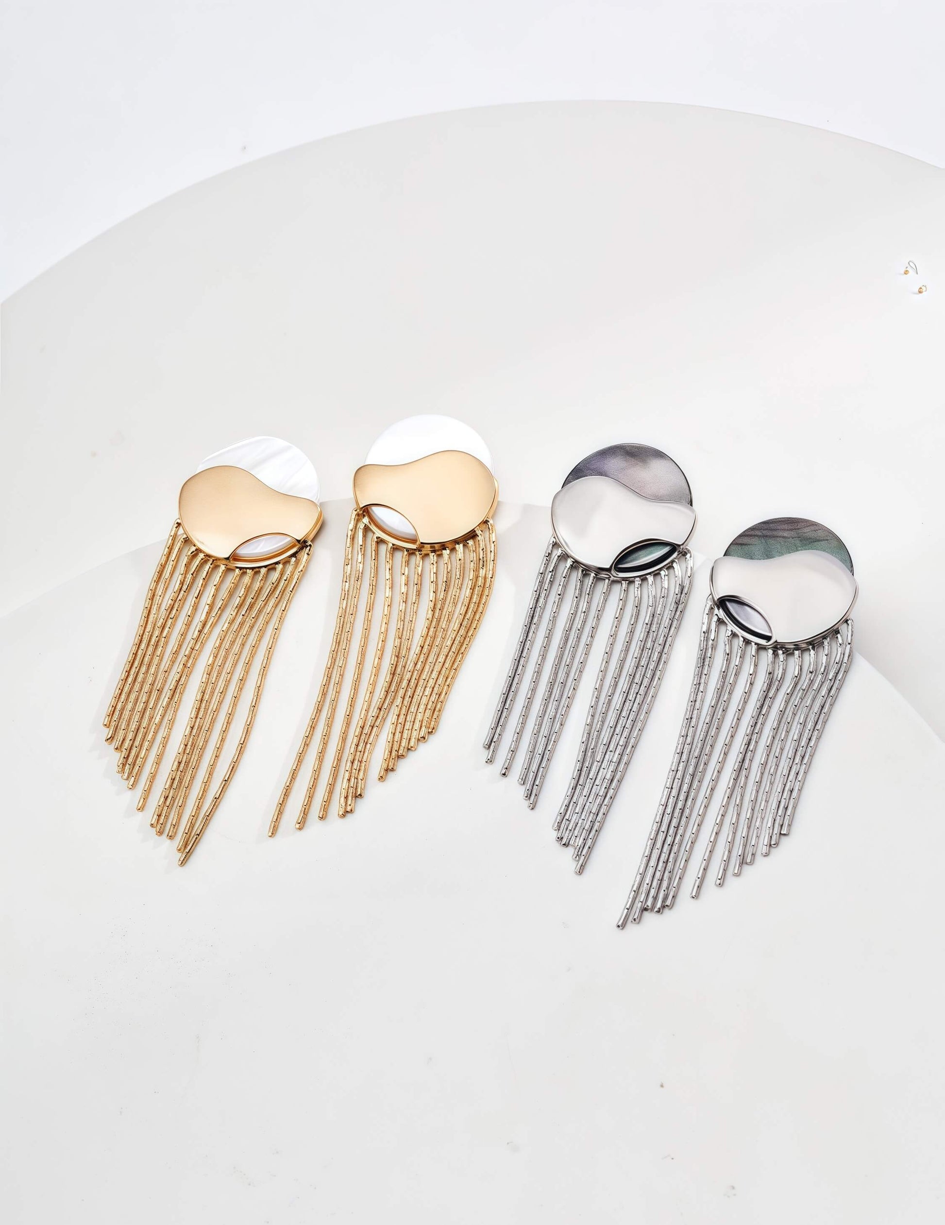 Crafted from S925 sterling silver with natural white and black shell inlays, these minimalist earrings blend simplicity with subtle luxury. Available in vintage gold and platinum tones, their elegant 5cm drop design gracefully frames the face, adding a touch of ocean-inspired charm to any look.