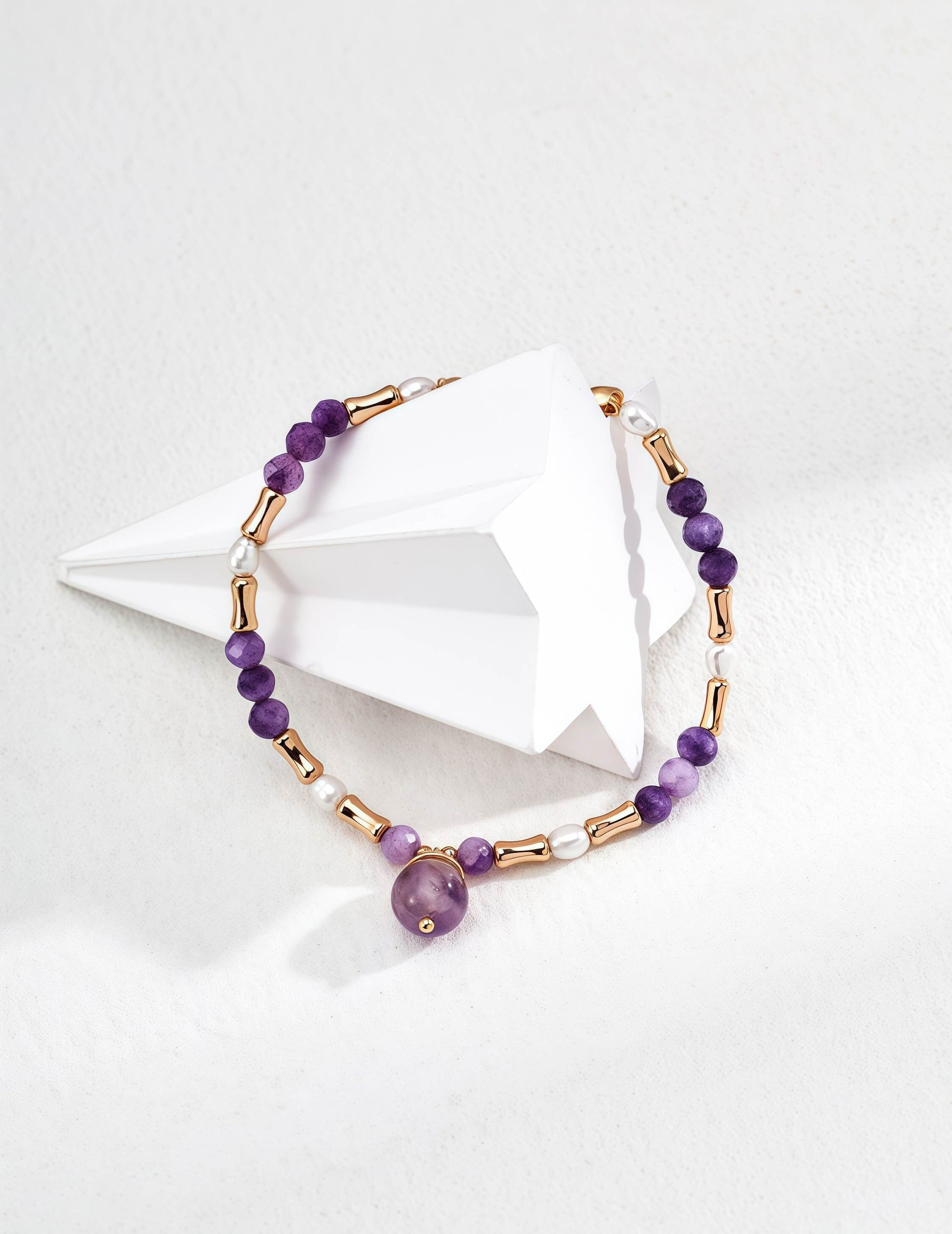 S925 Sterling Silver Pearl & Amethyst Gemstone Bracelet