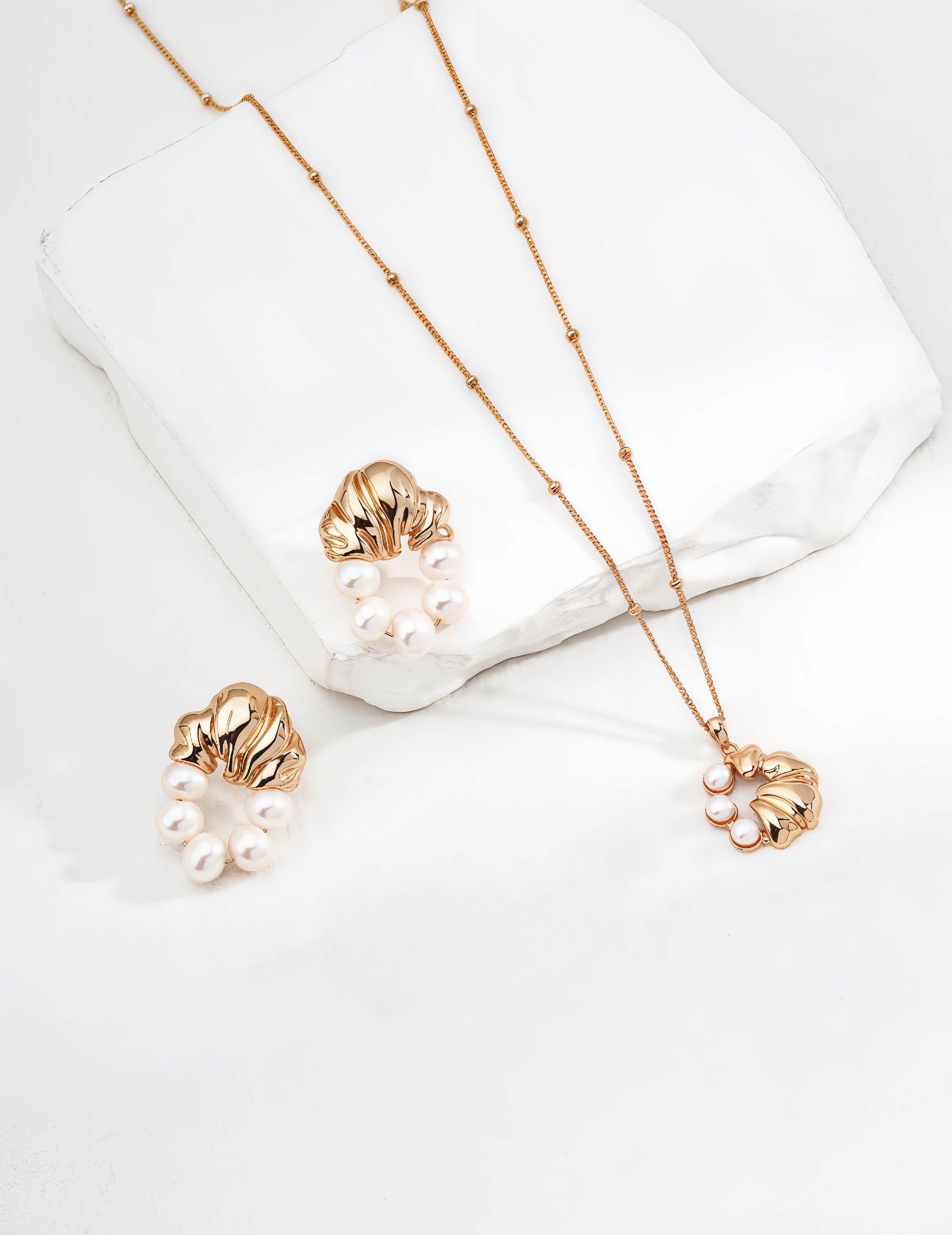 Elevate your style with this elegant vintage-inspired jewelry set. Made from premium S925 silver and adorned with natural freshwater pearls, it features a warm antique gold finish for a timeless look.